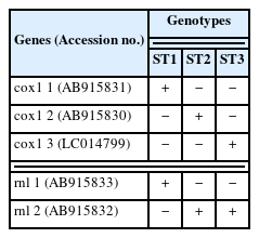 Table 1. PCR was performed using the ProFlex PCR System (Applied Biosystems) with AccuPower PCR Premix (Bioneer, Daejeon, Korea) according to the manufacturer’s instructions.