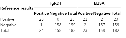 Table 2. Clinical performance of TgRDT and ELISA