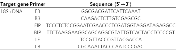 Table 2.The sequences of the LAMP primer sets used to amplify Acanthamoeba 18S rDNA genes for the LAMP assay
