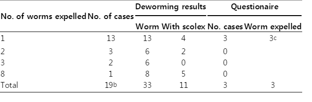 Table 2 shows the clinical manifestation of taeniasis among Aborigines in Taiwan and these patients were most probably infected with the Taiwan