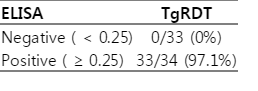 Table 1.Comparison of ELISA positive and negative group to TgRDT