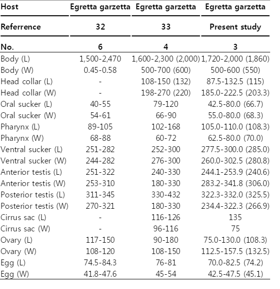• 15. Ryang YS, Ahn YK, Yoon MB. Trematode infections in the small intestine of Egretta alba modesta in Kangwon-do. Korean J Parasitol 1991;29:227-223.