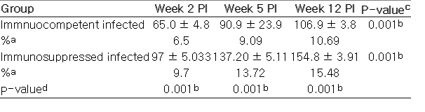 Table 1. Larval counts (mean±SD) in the brains of infected mice at weeks post-infection (PI)