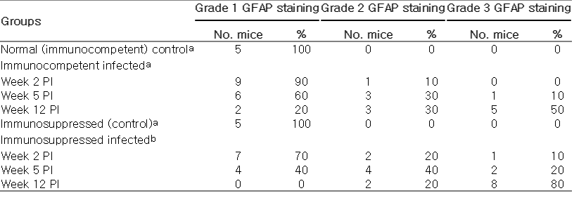 Table 2. GFAP immunoreactivity in the brains of studied mice (n=10 for infected groups)