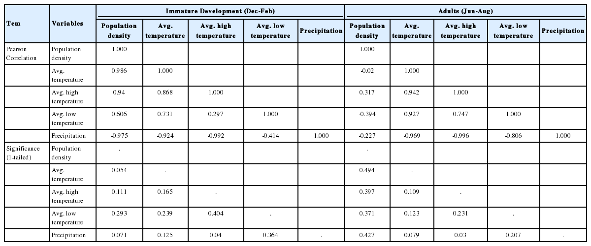 H. brevis) demonstrated population peaks during May. Surveys in the southern part of the ROK (Jeollabuk-do) showed that populations of many of the species peaked from the end of June to early July [