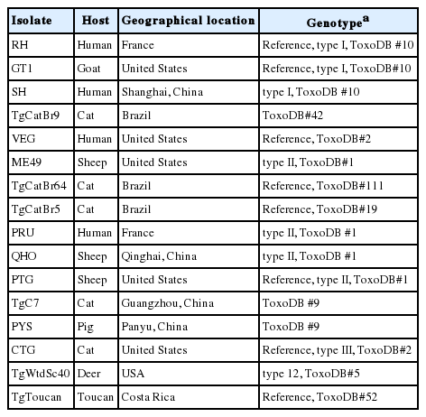 T. gondii strains from different hosts and geographic locations were used for analysis (