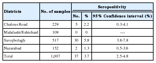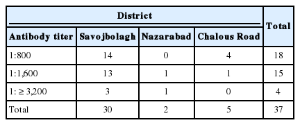 Table 2.The seroprevalence findings of subjects in the 4 rural districts of Alborz Province in 2013