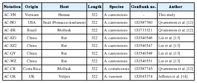 AC-VN Vietnam Human 522 A. cantonensis - This study