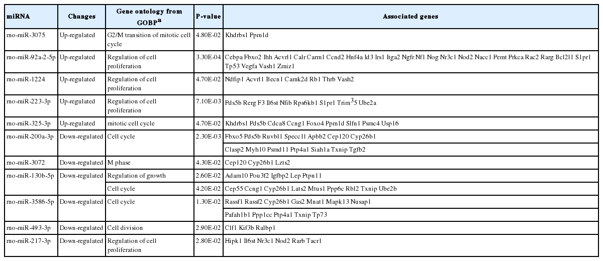 The miRNAs with gene ontology related with cell cycle or cell proliferation were searched. Only gene ontology terms with