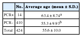 It is very interesting that the average age of the 14 infected women was over 60. In contrast, Goo et al. [6] reported that the median age of 19 infected subjects among 621 women who visited obstetrics and gynecology clinics in Daegu was 31.9 years old [6]. This age difference of the infected women probably may originate from different patient’s group; target of this study was women (generally old women) who visited for health screening, while Goo et al. [6]’s subjects were younger women with genital problems who came to visit the obstetrics and gynecology clinics.