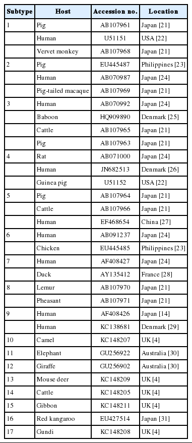 3]. At least 17 distinct subtypes (STs) of