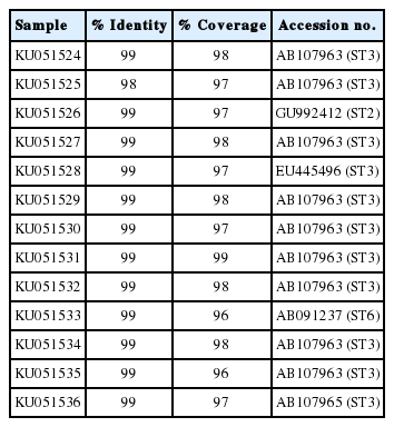 Table 2.BLAST results for positive samples in this study
