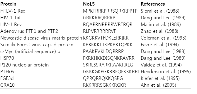 Table 1.Alignment of NoLS sequences of identified nucleolar proteins