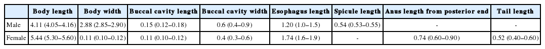 The male and female nematodes collected in this study were diagnosed on the basis of morphological characteristics and preliminarily identified as