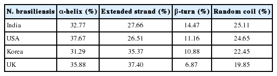 N. brasiliensis against Protein Data Bank (PDB) was performed by using SWISS-MODEL [