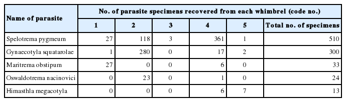 Table 1 The kinds and numbers of recovered flukes from 5 whimbrels