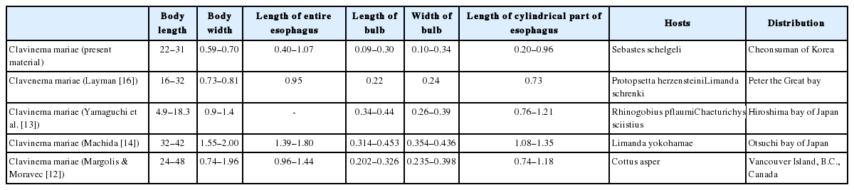 Key words: Clavinema mariae, nematode, rockfish, Sebastes schlegeli, Cheonsuman, Korea