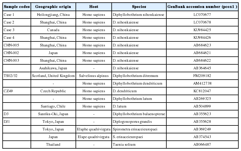 - 22. Chen S, Ai L, Zhang Y, Chen J, Zhang W, Li Y, Muto M, Morishima Y, Sugiyama H, Xu X, Zhou X, Yamasaki H. Molecular detection of Diphyllobothrium nihonkaiense in humans, China. Emerg Infect Dis 2014;20:315-318.