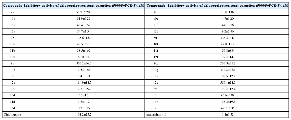 Table 1 Antimalarial activity of C-10 substituted triazolyl artemisinin against chloroquine-resistant parasite