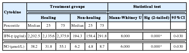 Healing Non-healing Mann-Whitney U Sig (2-tailed) 95%CI