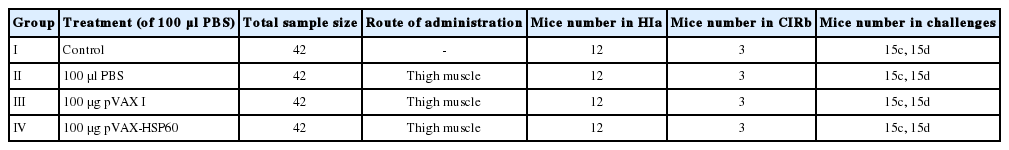 Table 1), and their immunization and challenge were performed as the previous approaches with some modifications [