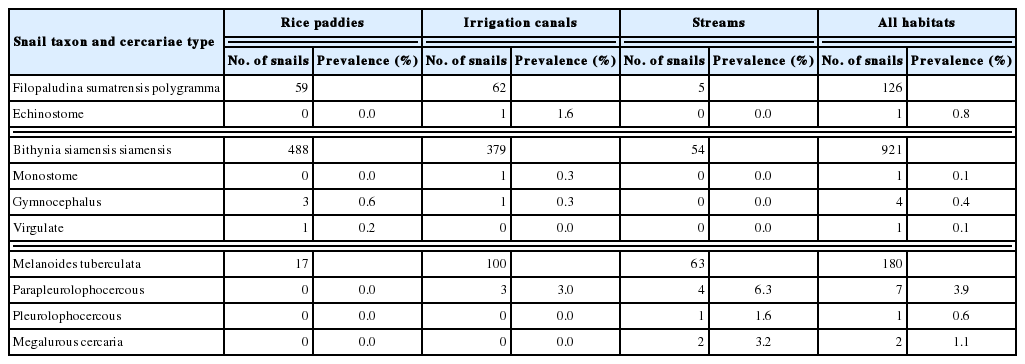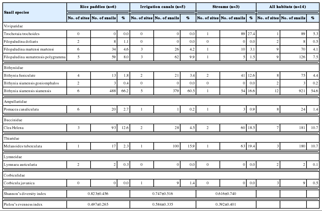 Table 2). Bithyniid snails were particularly abundant in rice paddies and irrigation canals.