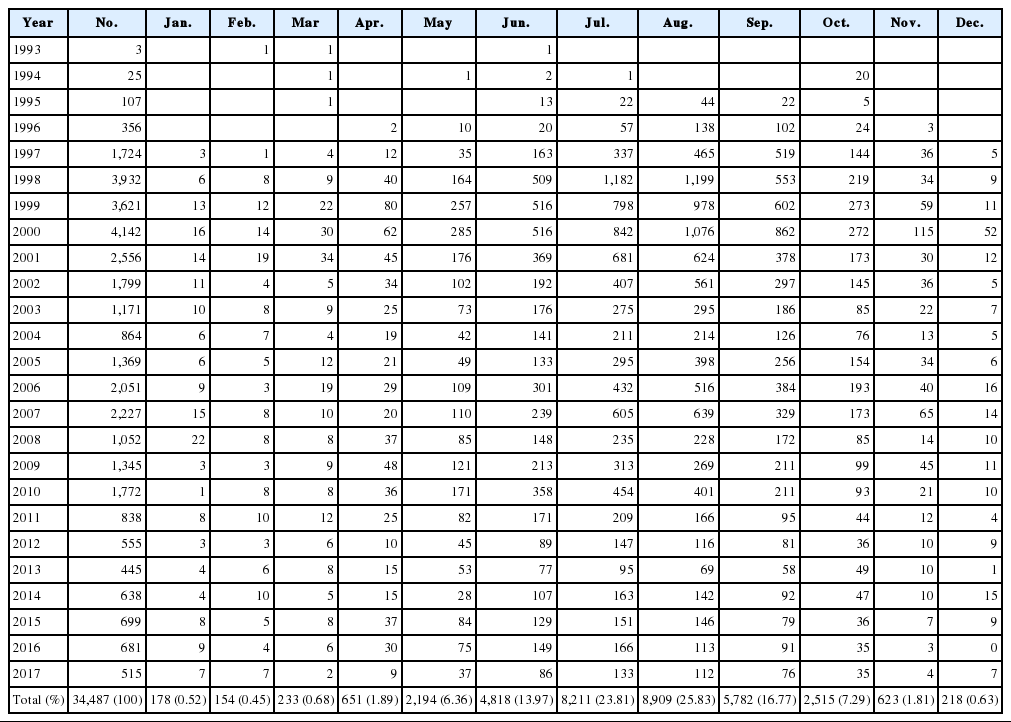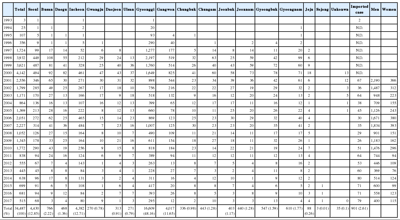 37]. Since the re-emergence of vivax malaria in Korea (1993–2017), 33,972 cases have been diagnosed and reported (