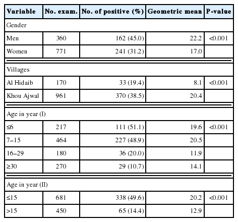 Warning: fwrite() expects parameter 1 to be resource, boolean given in /home/virtual/lib/view_data.php on line 84 Epidemiological Survey on Schistosomiasis and Intestinal Helminthiasis among Village Residents of the Rural River Basin Area in White Nile State, Sudan