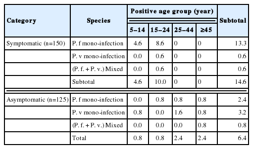 Table 3 Distribution of symptomatic and asymptomatic malaria cases by age group