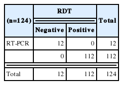 Diagnostic performance of in-house RDT compared with RT-PCR