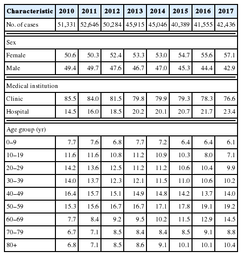Table 1 Demographic characteristics of scabies cases in South Korea, 2010–2017