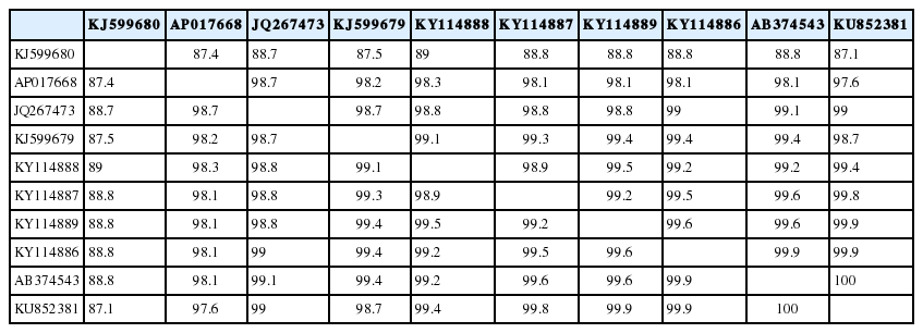 KY114889 88.8 98.1 98.8 99.4 99.5 99.2 99.6 99.6 99.9