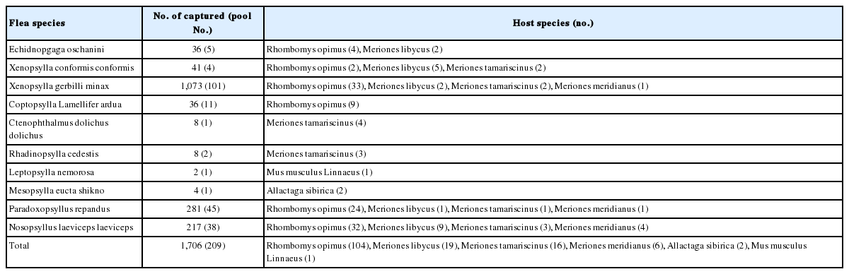 Xenopsylla gerbilli minax 1,073 (101) Rhombomys opimus (33), Meriones libycus (2), Meriones tamariscinus (2), Meriones meridianus (1)