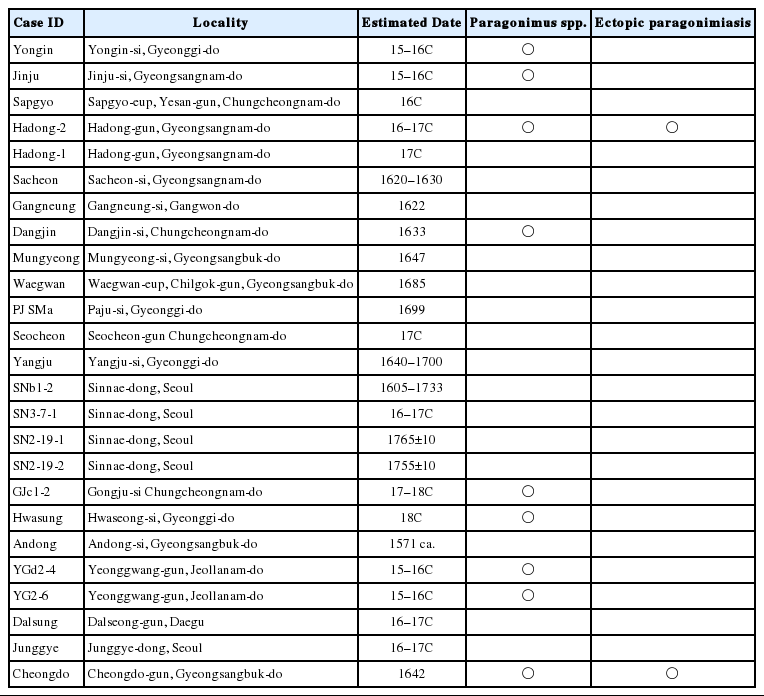 Table 1Prevalences of paragonimiasis in the Joseon mummies previously reported by Seo et al. [