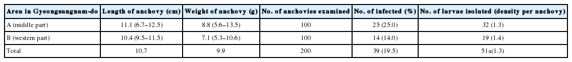 Table 1 Infection status with anisakid larvae in anchovies collected from the south coast of Korea