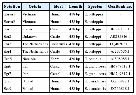 Eor2 Unknown Cattle 438 bp E. ortleppi AB235846.1