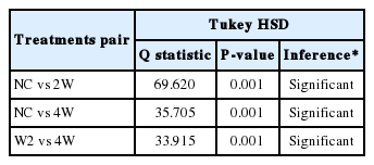 hoc Tukey’s HSD multiple comparison tests were applied to identify significant differences among the sample groups using Tukey R-package [
