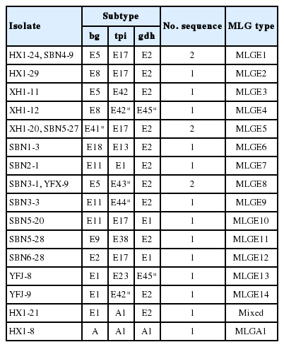 - 28. Cui Z, Wang L, Cao L, Sun M, Liang N, Wang H, Chang Y, Lin X, Yu L, Wang R, Zhang S, Ning C, Zhang L. Genetic characteristics and geographic segregation of Giardia duodenalis in dairy cattle from Guangdong Province, southern China. Infect Genet Evol 2018;66:95-100. https://doi.org/10.1016/j.meegid.2018.09.019