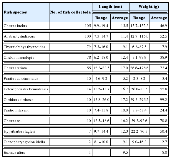 Table 1 Fish purchased in a local fish market in North Dagon District, Yangon City, Myanmar