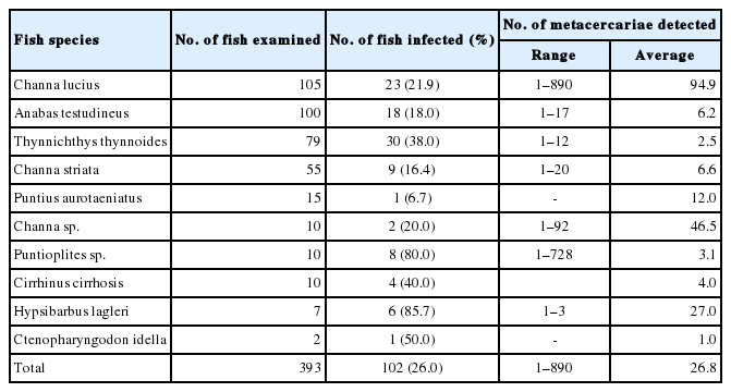 Table 4 Infection status of Haplorchis taichui metacercariae by species of fish from Yangon City, Myanmar