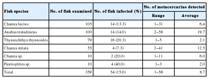 Table 5 Infection status of Haplorchis pumilio metacercariae by species of fish from Yangon City, Myanmar