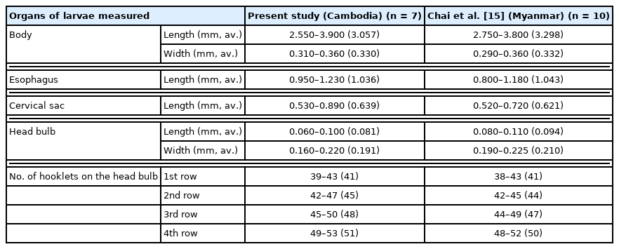 Organs of larvae measured Present study (Cambodia) (n = 7) Chai et al. [15] (Myanmar) (n = 10)