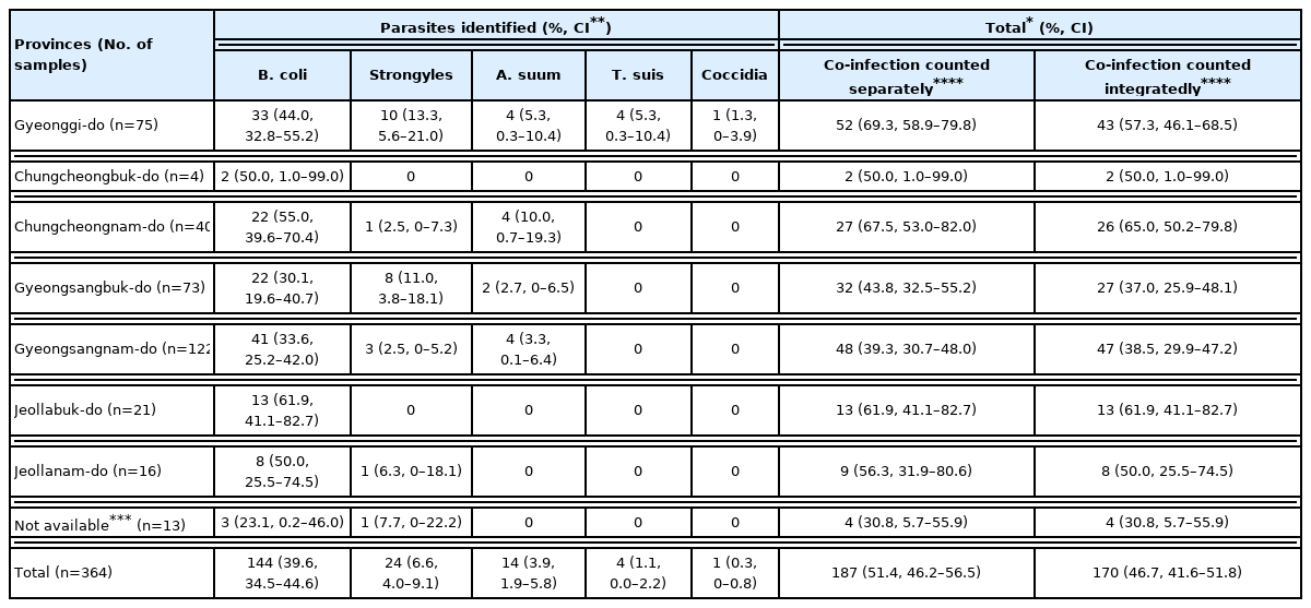 Table 1Regional prevalence of gastrointestinal parasites in domestic pigs in Korea