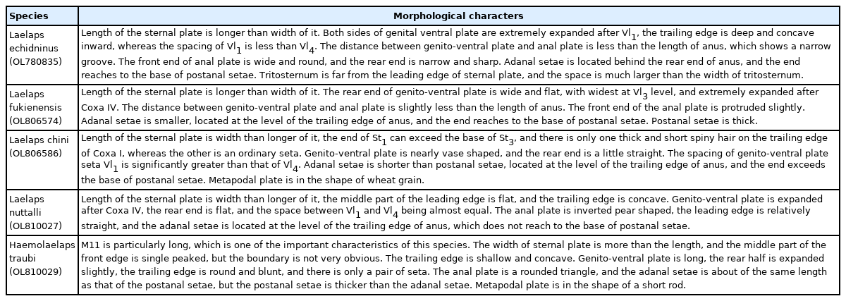 Table 1Identification basis of Laelapinae spp. from China