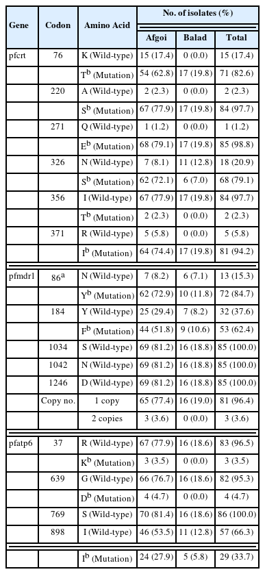 P. falciparum isolates carried the wild-type alleles of