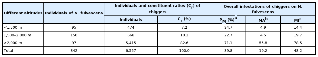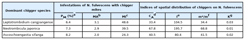 Infestation parameters of chigger species on N. fulvescens