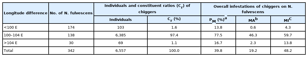 - 25. Zhan YZ, Guo XG, Speakman JR, Zuo XH, Wu D, et al. Abundances and host relationships of chigger mites in Yunnan Province, China. Med Vet Entomol 2013;27(2):194-202.