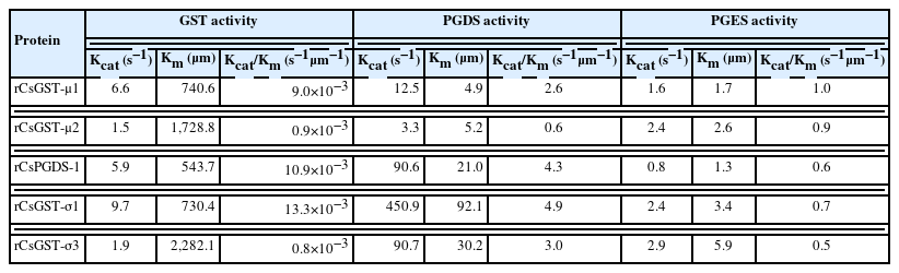 Table 1Steady-state kinetics parameters of Clonorchis sinensis recombinant GST proteins