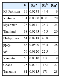 FST) and haplotype frequencies, were evaluated using the analysis of molecular variance. The significance of the analysis of molecular variance was estimated by 1,000 per mutation, and the nucleotide diversity based on Nei’s net distance was computed using Arlequin v3.5 [
