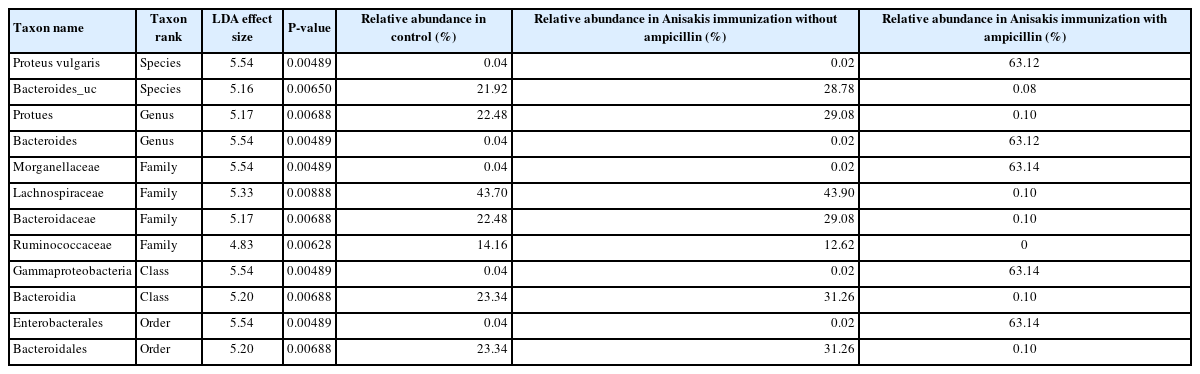 Key words: Anisakis pegreffii, immunoglobulin, immunoblot, ampicillin, microbiome, allergen